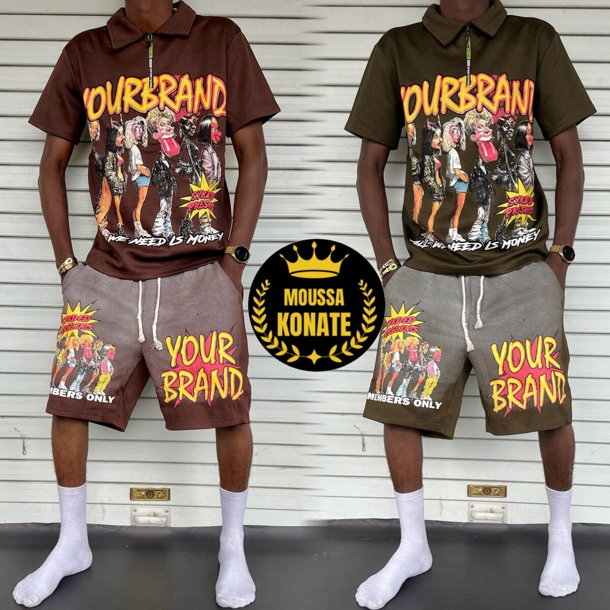 Optez pour cet ensemble polo et short, parfait pour un look urbain et stylé. Confort et design unique garantis. Disponible en plusieurs motifs.