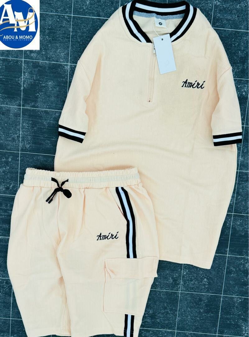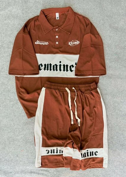 Ensemble décontracté pour homme comprenant un polo et un short assorti. Confortable et élégant avec un design à rayures distinctives. Idéal pour les journées décontractées ou les sorties estivales. Fabriqué à partir de matériaux de haute qualité pour un confort optimal.
