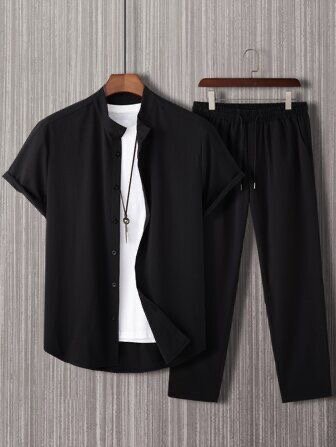 Ensemble élégant pour homme, parfait pour garder une allure chic et décontractée. Composé d'une chemise légère à manches courtes et d'un pantalon confortable avec taille élastique. Idéal pour les sorties estivales ou les moments de détente à la maison. Disponible en plusieurs couleurs pour assortir à votre style personnel. Un incontournable pour une garde-robe moderne!