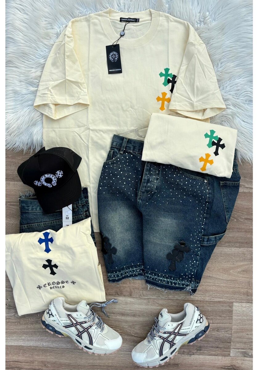Découvrez cet ensemble décontracté moderne composé d'un t-shirt en coton doux, un short en jean tendance, et une casquette stylée. Parfait pour un look urbain et confortable, idéal pour les sorties entre amis ou pour un look cool au quotidien. Complétez-le avec des baskets pour un style polyvalent et branché.