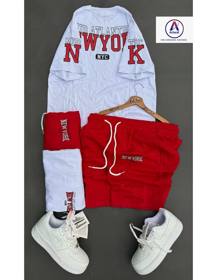 Adoptez le style urbain avec cet ensemble tendance composé d'un t-shirt blanc et d'un short rouge "New York". Parfait pour une journée décontractée ou une balade en ville. Confort et style garantis!