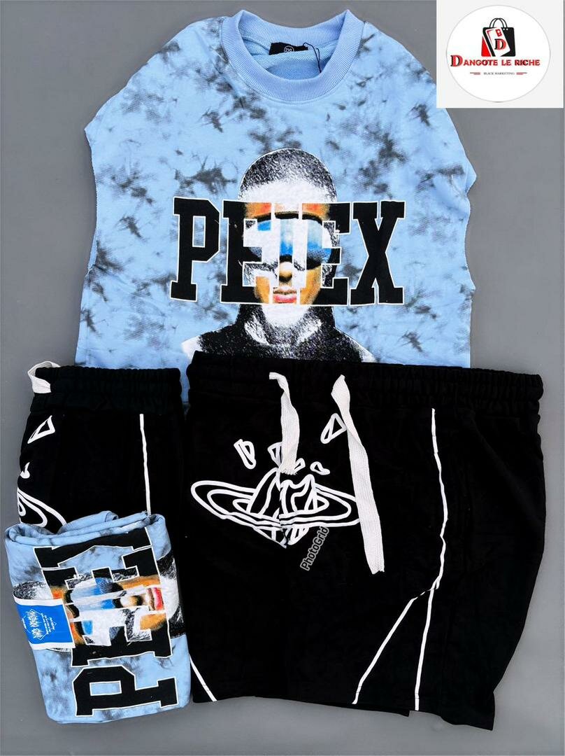 Ensemble tendance avec t-shirt tie-dye et shorts PEDEX. Confort et style pour un look urbain décontracté.