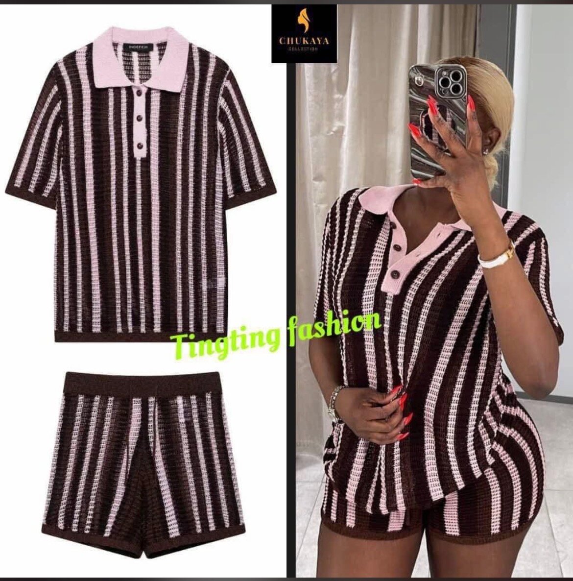 Découvrez cet ensemble décontracté chic avec motifs rayés. Idéal pour un look tendance, il convient parfaitement aux sorties estivales ou pour rester élégante à la maison. Confort et style garantis.
