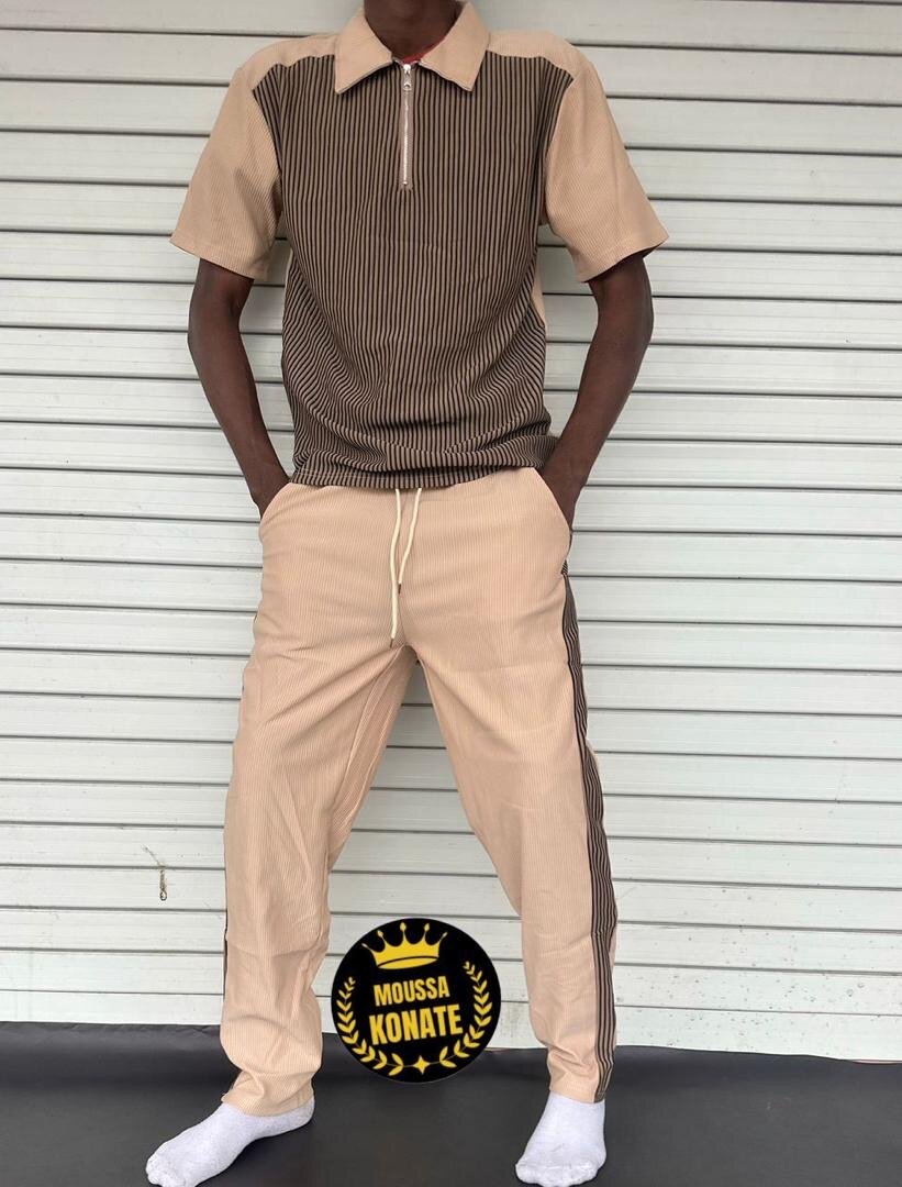 Cet ensemble élégant est idéal pour les sorties décontractées. Sa conception rayée unique et ses couleurs neutres en font un choix parfait pour les journées d'été et les occasions informelles. Fabriqué à partir de matériaux confortables, il offre une coupe détendue et moderne.