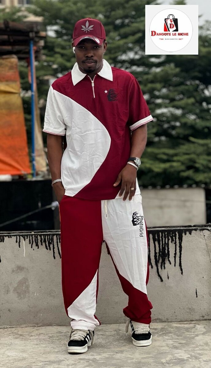 Découvrez cet ensemble décontracté rouge et blanc, parfait pour un look casual et tendance. Conçu en matériaux confortables et respirants, il est idéal pour les sorties urbaines. Portez-le avec des sneakers pour un style complet et moderne.