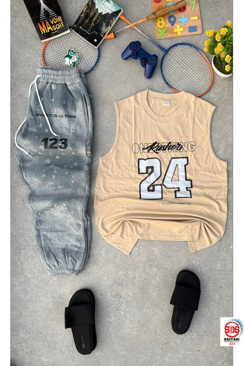 Découvrez notre ensemble décontracté sportif pour homme, comprenant un débardeur stylé et un pantalon confortable. Idéal pour les loisirs et les activités sportives, cet ensemble offre une liberté de mouvement optimale. Fabriqué avec des matériaux de haute qualité pour un confort durable. Parfait pour la maison, la salle de sport ou une sortie détendue.