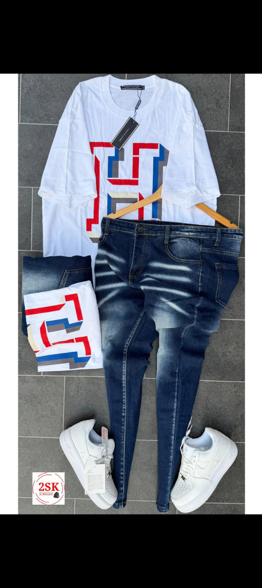 Découvrez notre ensemble décontracté pour hommes, idéal pour une allure tendance et confortable. Le set comprend un sweat-shirt stylé, un jean robuste et des baskets assorties, parfaits pour une sortie en ville ou un rendez-vous entre amis.