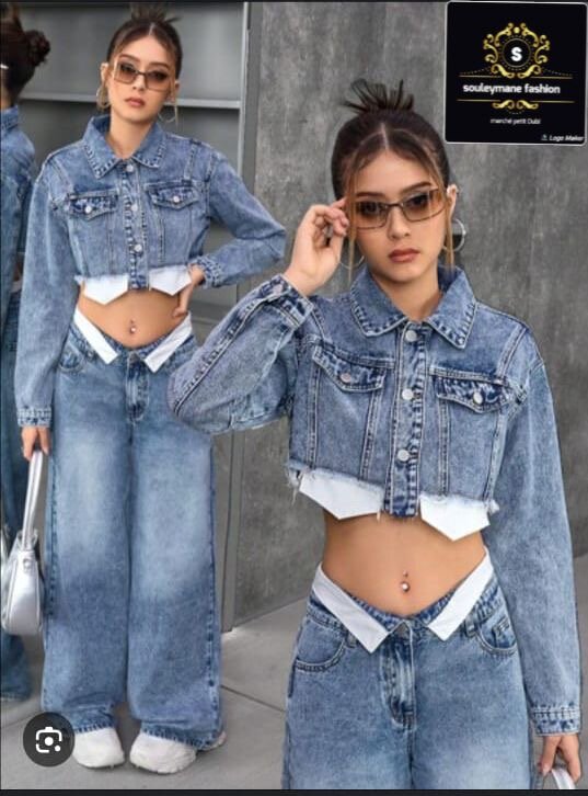 Découvrez notre ensemble denim tendance pour femme, composé d'une veste courte et d'un pantalon large. Parfait pour un look casual et stylé au quotidien. La découpe unique et le design moderne vous assurent de vous démarquer en toute occasion. Idéal pour les sorties entre amis ou un brunch urbain. Soyez à la pointe de la mode avec cet ensemble incontournable !