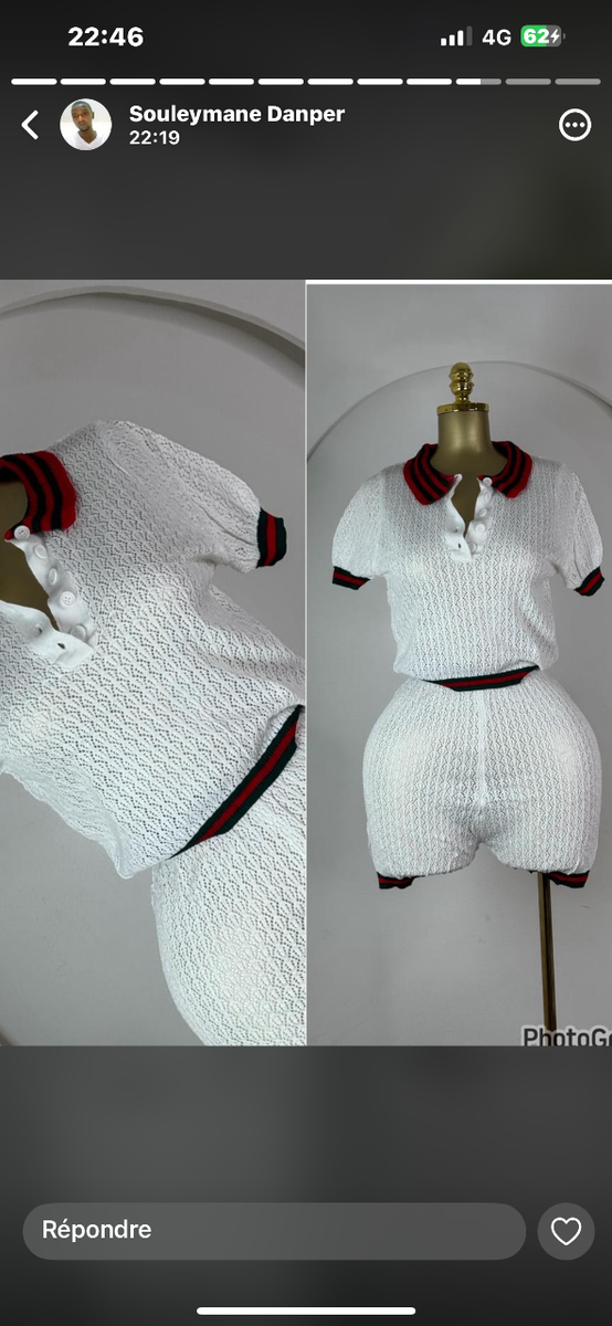 Cet ensemble d'été en tricot est parfait pour un look chic et décontracté. Fabriqué avec des matériaux confortables, il se compose d'un polo à manches courtes et d'un short assorti. Idéal pour les journées chaudes en ville ou à la plage. Style et confort garantis!