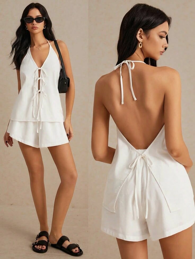 Découvrez cet ensemble estival chic pour femmes, composé d'un haut noué et d'un short léger. Idéal pour les journées chaudes, il offre confort et style avec sa coupe décontractée. Parfait pour une sortie en bord de mer ou une promenade en ville, cet ensemble est un incontournable de votre garde-robe d'été.