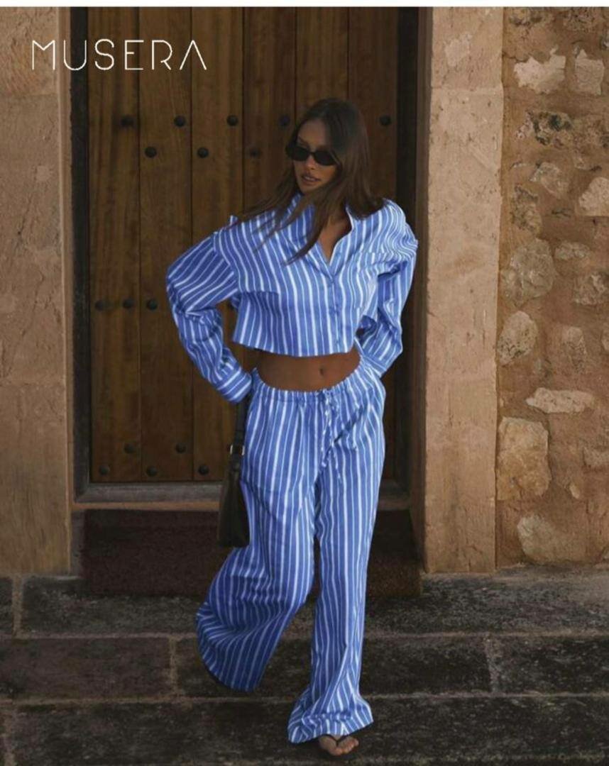 Cet ensemble d'été rayé pour femme offre style et confort, idéal pour les journées chaudes. Fabriqué avec des matériaux légers, il est parfait pour une sortie décontractée ou une promenade en bord de mer. Disponible en différentes couleurs, il s'adapte à toutes les occasions estivales.
