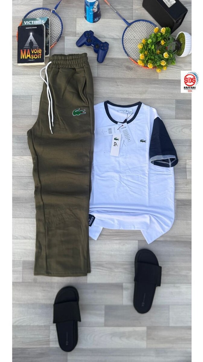 Découvrez cet ensemble détente pour homme, composé d'un t-shirt confortable, un pantalon chic et des sandales pratiques. Parfait pour une tenue décontractée à la maison ou une sortie en ville. Offrez-vous le confort et le style au quotidien !
