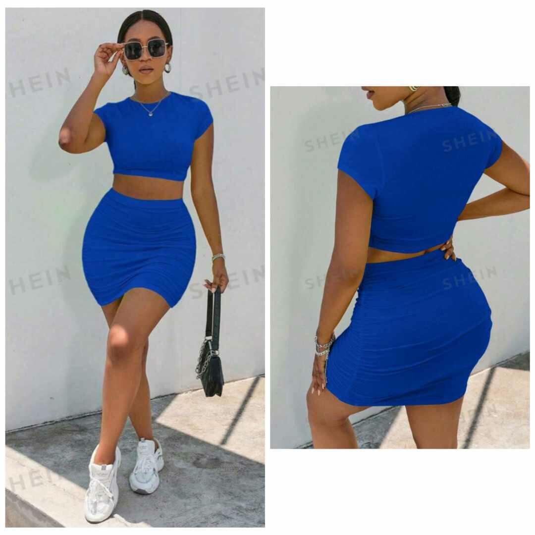 Cet ensemble moderne en bleu vif est parfait pour une sortie en ville. Comprend un haut crop et une jupe ajustée, soulignant vos courbes avec élégance. Idéal pour les journées ensoleillées ou les soirées décontractées, il offre style et confort en un.