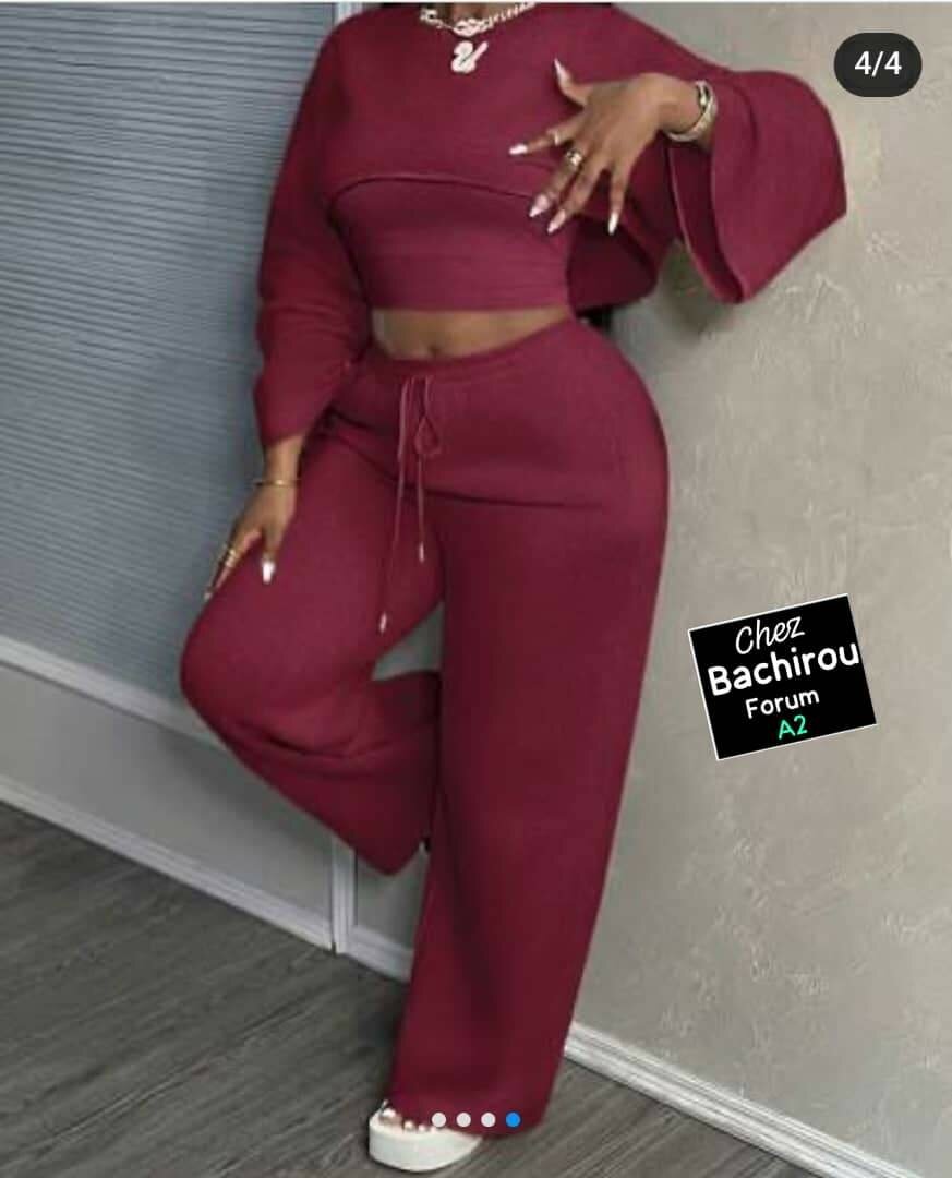 Ce superbe ensemble deux pièces bordeaux est parfait pour un look à la fois chic et confortable. Idéal pour les occasions décontractées ou habillées, il se compose d'un haut à manches amples et d'un pantalon taille haute. Sa couleur riche et son design élégant mettront en valeur votre silhouette avec style.