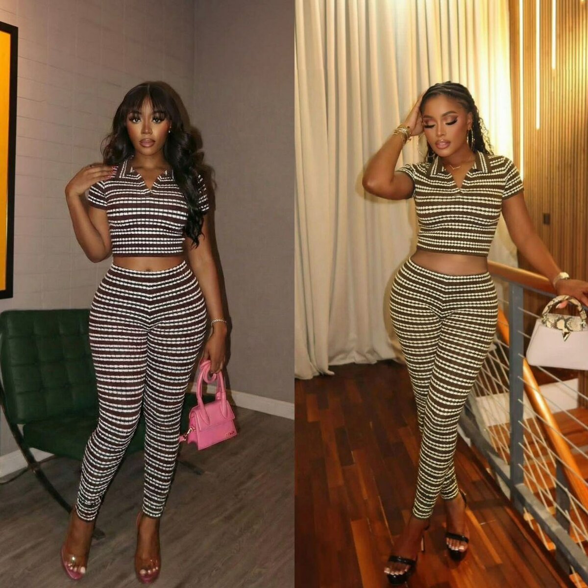 Ensemble deux pièces chic avec haut court et pantalon rayé. Parfait pour des sorties décontractées ou des occasions spéciales. Conçu pour mettre en valeur votre silhouette.