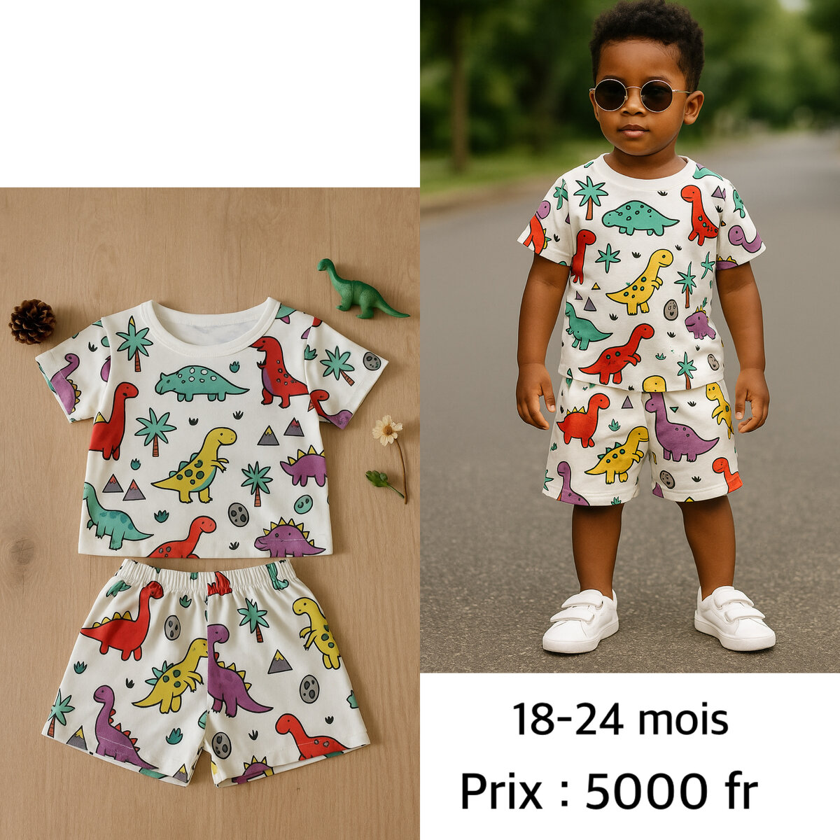 Ensemble adorable pour bébé avec motif dinosaure coloré, parfait pour les enfants de 18-24 mois. Confortable et idéal pour les journées ensoleillées. Offrez à votre enfant un style ludique et mignon.