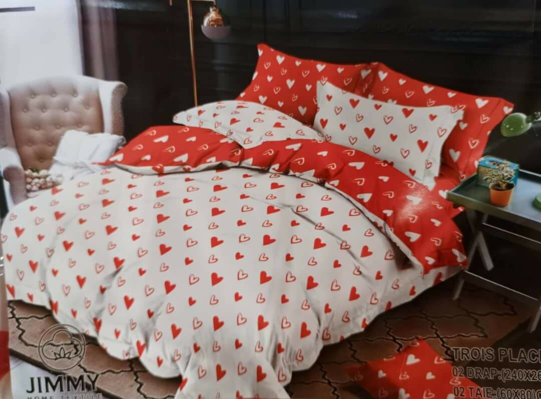 Bientôt la Saint Valentin Ensemble draps de 3 places 2draps et deux taies d'oreillers