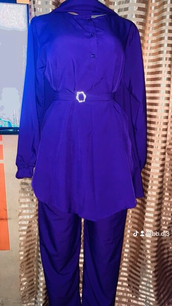 Découvrez cet ensemble bleu raffiné, parfait pour un look chic et moderne. Idéal pour les sorties ou événements formels, sa coupe longue et fluide assure élégance et confort. Complétez votre garde-robe avec cet essentiel polyvalent.