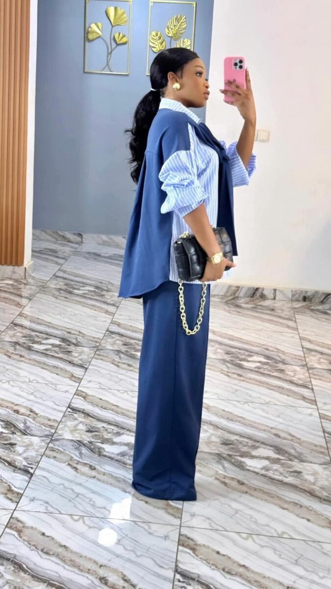 Ce superbe ensemble bleu pour femme combine style et confort. Parfait pour les occasions professionnelles ou décontractées. Soyez prête à impressionner !