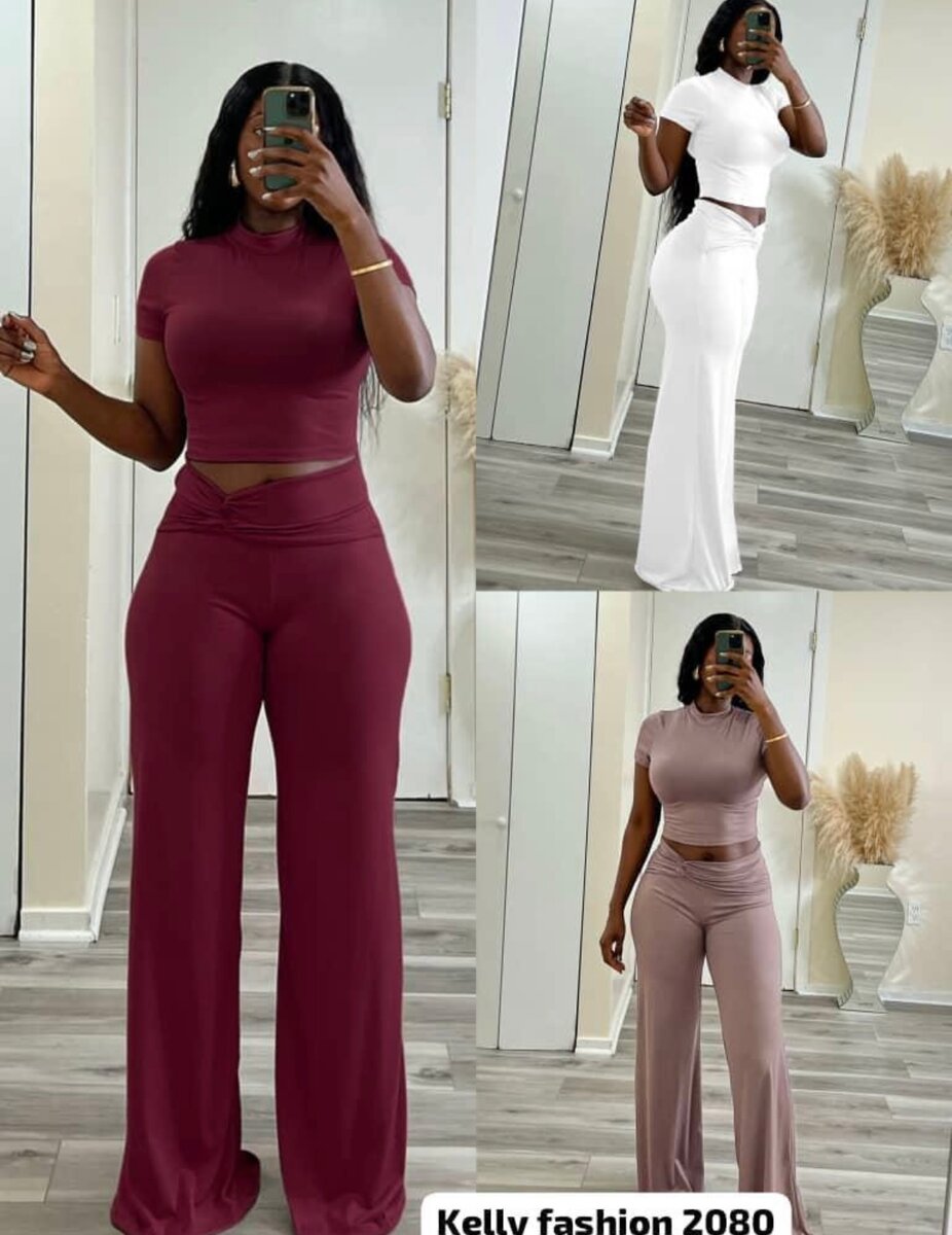 Optez pour cet ensemble chic et confortable composé d'un haut ajusté et d'un pantalon à jambes larges. Parfait pour une allure sophistiquée lors de vos sorties ou pour un look décontracté au quotidien. Disponible en plusieurs couleurs.