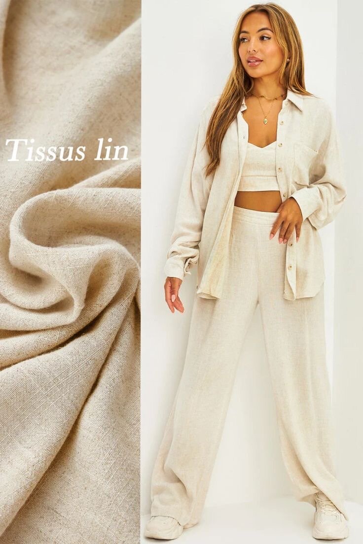 Découvrez cet ensemble en lin, idéal pour un look chic et confortable. Parfait pour toutes occasions estivales, ce set composé d'une chemise et d'un pantalon offre une élégance naturelle et un confort incomparable. Légèreté et style garantis!