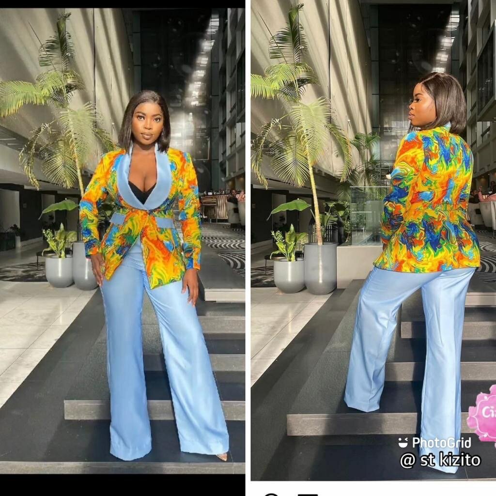 Adoptez un look audacieux et élégant avec cet ensemble pour femme aux couleurs vives. Parfait pour les événements spéciaux ou un jour de travail professionnel, ce vêtement ajoute une touche de couleur et de modernité à votre garde-robe. La veste multicolore se marie harmonieusement avec le pantalon bleu, offrant à la fois confort et style.