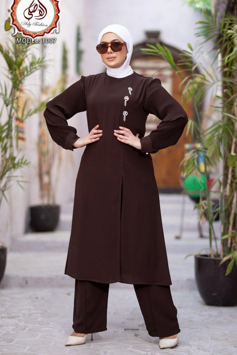 Découvrez cet ensemble élégant pour femmes, idéal pour un look sophistiqué et moderne. Composé d'une tunique longue et d'un pantalon assorti, il offre une coupe flatteuse et un confort optimal. Parfait pour les occasions spéciales ou les sorties quotidiennes, cet ensemble se distingue par ses détails raffinés et sa palette de couleurs chic. Faites sensation avec ce choix de mode musulmane.