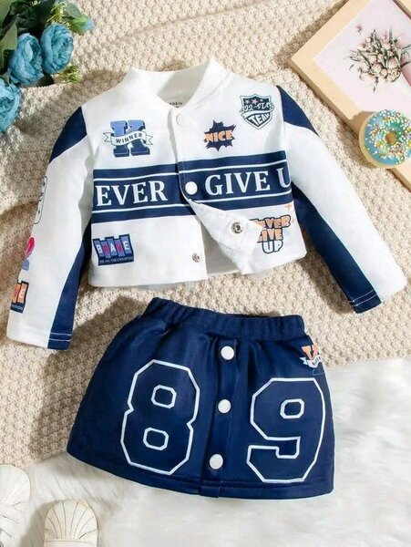 Ensemble élégant pour fille comprenant une chemise rayée bleue avec un col blanc et un gilet noir, accompagné d'un pantalon bleu. Parfait pour une tenue chic et confortable, idéal pour l'école ou les sorties. Ajoutez de l'élégance au style quotidien de votre enfant.