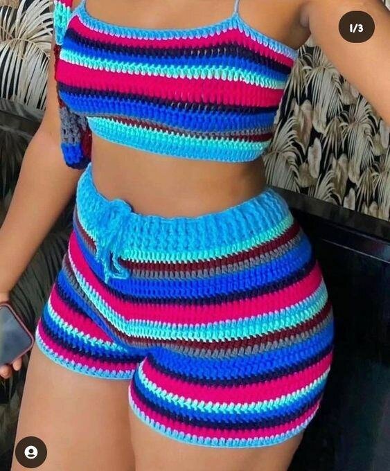 Ajoutez une touche bohème à votre garde-robe avec cet ensemble en crochet vibrant. Parfait pour l'été, il se compose d'un haut léger et de shorts confortables. Idéal pour la plage ou un look décontracté en ville, ce modèle unique vous garantit confort et style. Fait à la main avec soin pour un look original et tendance.