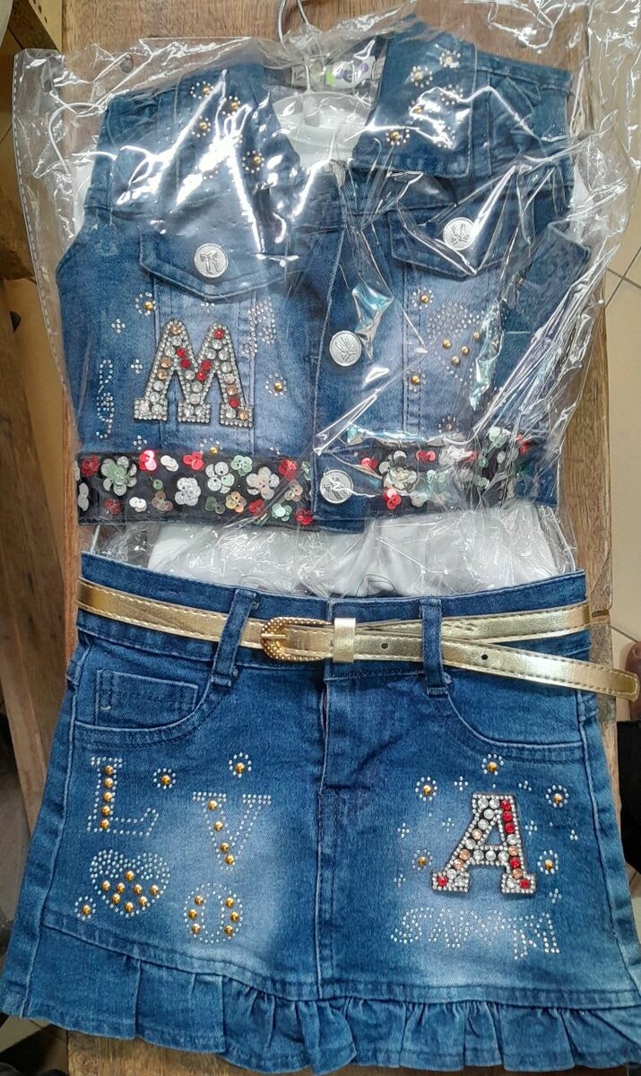 Éblouissez avec cet ensemble en jean pour fille décoré de strass scintillants. Composé d'une veste et d'une jupe avec une ceinture dorée, cet ensemble est parfait pour les occasions spéciales ou pour apporter une touche de glamour au quotidien. Offrez à votre enfant un style unique et tendance. Convient pour les sorties et événements spéciaux.