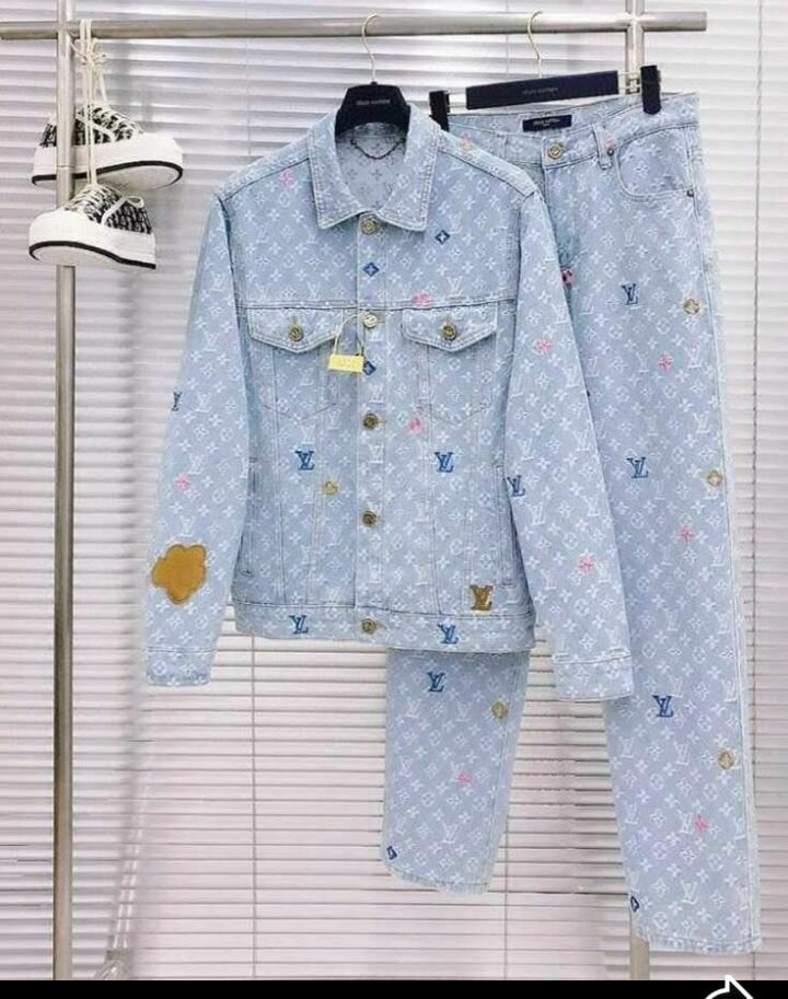 Adoptez un look audacieux avec cet ensemble en jean imprimé. Parfait pour les sorties décontractées, sa coupe moderne et son motif unique le rendent incontournable. Associez-le à vos baskets préférées pour un style incomparable.