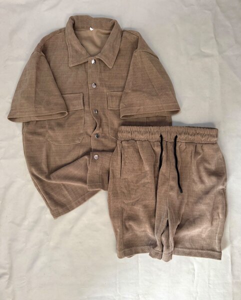 Optez pour cet ensemble charmant et confortable pour enfant. Fabriqué en tissu côtelé marron, il est parfait pour les journées décontractées. Ses boutons pratiques et sa coupe ample assurent liberté de mouvement. Idéal pour jouer ou se détendre à la maison.