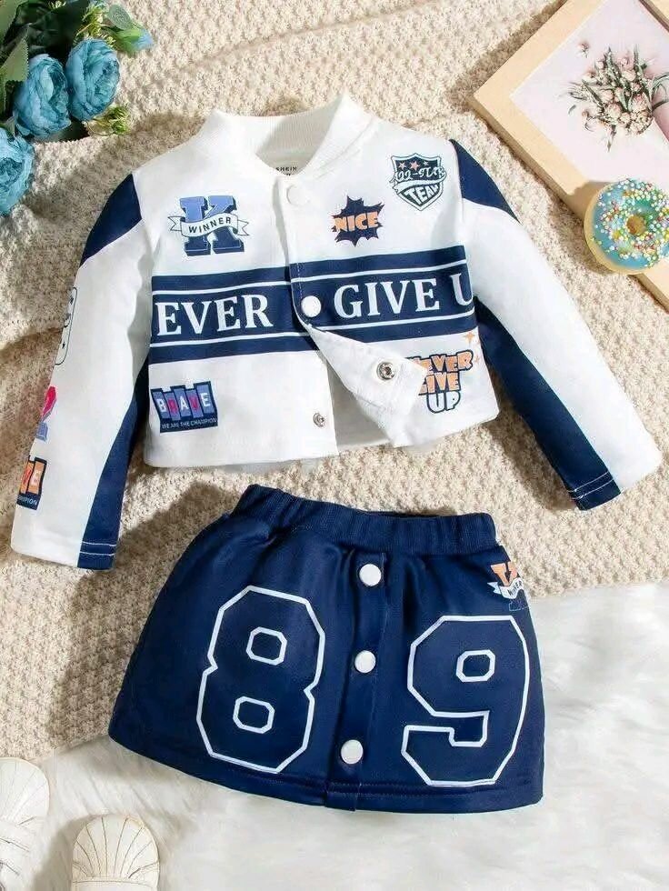 Découvrez cet ensemble enfant tendance avec veste imprimée et jupe bleue. Parfait pour ajouter une touche sportive au quotidien de votre enfant grâce à son design moderne. Disponible en plusieurs tailles pour s'adapter à tous.