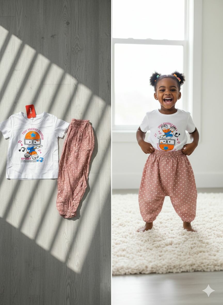 Offrez à votre enfant confort et style avec cet adorable ensemble composé d'un T-shirt à motif robot et d'un pantalon à pois légers. Parfait pour une journée de jeux ou une sortie en famille. Idéal pour toutes les occasions décontractées.