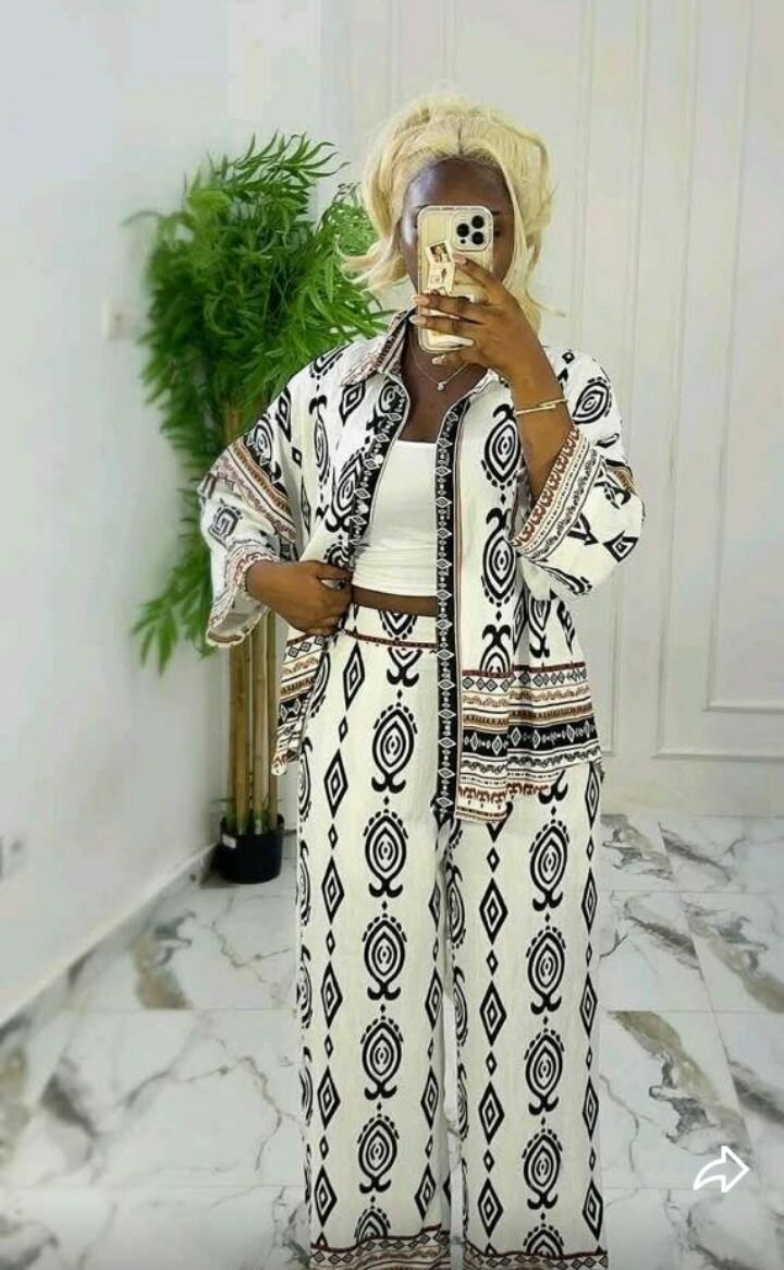 Découvrez cet ensemble élégant pour femme, composé d'une veste et d'un pantalon en soie. Parfait pour des occasions spéciales ou une soirée chic.