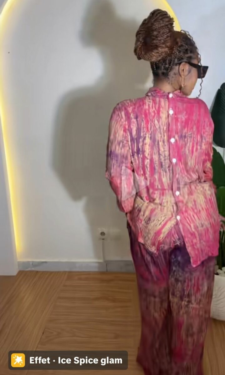 Découvrez cet ensemble élégant pour femme, composé d'un haut et d'un pantalon en soie. Parfait pour des occasions spéciales ou une soirée chic.