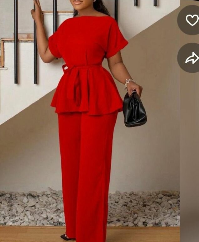 Découvrez cet ensemble femme chic rouge, comprenant une robe ou un pantalon élégant. Parfait pour des occasions spéciales.
