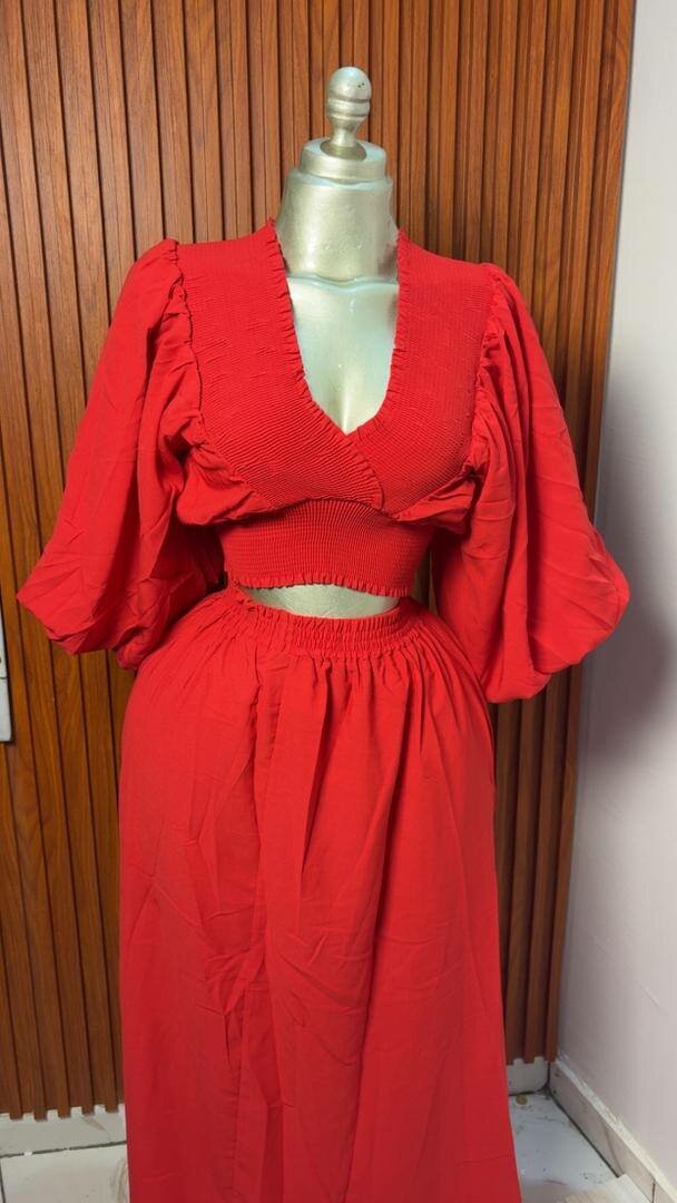 Ensemble jupe et haut fleuri rouge
