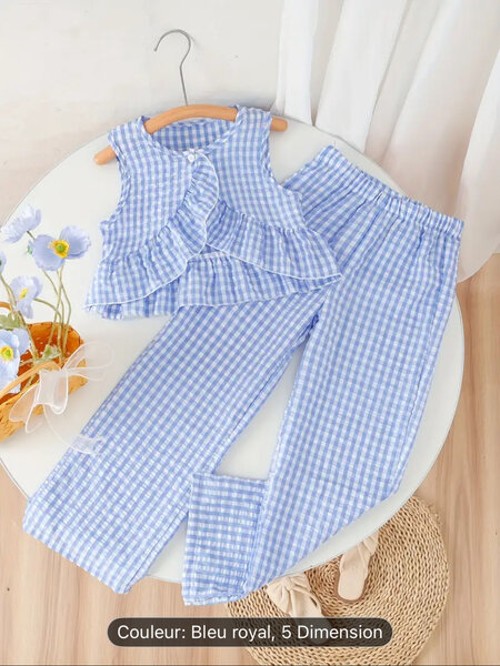 Découvrez cet ensemble élégant pour enfants, parfait pour le printemps et l'été. Composé d'un pantalon fluide, un haut sans manches, et des accessoires assortis. Idéal pour une tenue de journée chic ou une sortie en soirée. Confectionné en tissu léger et confortable pour un port agréable toute la journée.