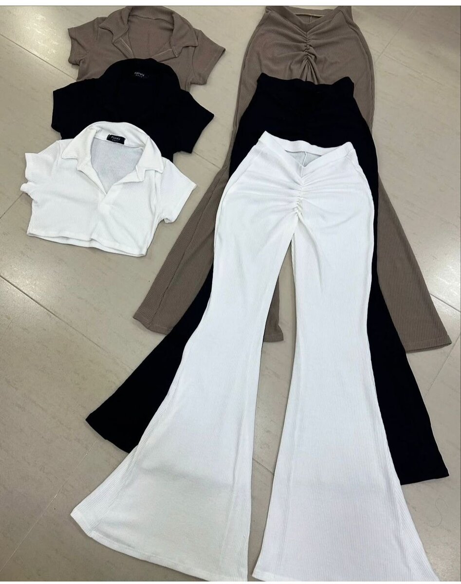 Découvrez cet ensemble tendance pour femme composé de pantalons évasés et de tops assortis. Parfait pour un style chic au quotidien ou en soirée. Fabriqué à partir de matériaux confortables et élégants. Idéal pour créer différentes tenues stylées et modernes.