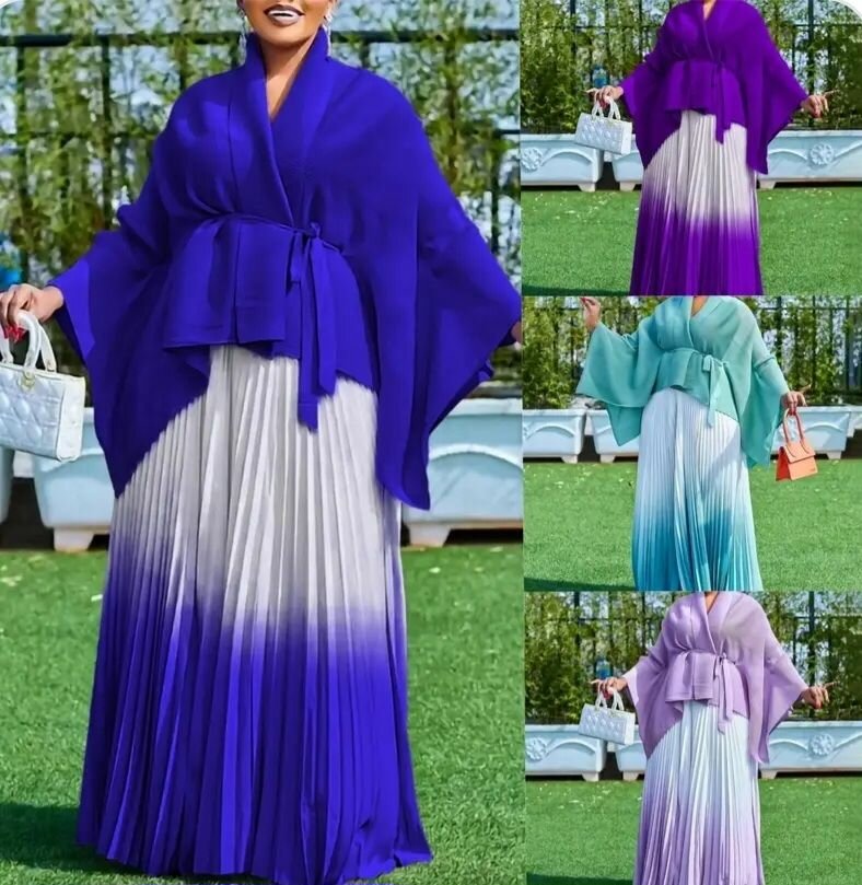 Découvrez cet ensemble femme élégant composé d'un kimono et d'une robe longue, parfait pour une tenue chic et moderne. Disponible en plusieurs couleurs.