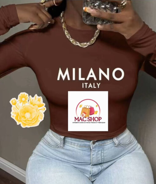 Ensemble décontracté pour femmes, idéal pour le quotidien. Top court et pantalon ample avec design Milano Italy. Confortable et tendance, parfait pour le shopping ou les sorties décontractées.