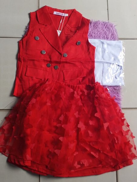 Charmant ensemble fille violet avec hauts ornés de boutons perle et jupe en tulle papillons. Idéal pour occasions spéciales ou tenues quotidiennes élégantes.