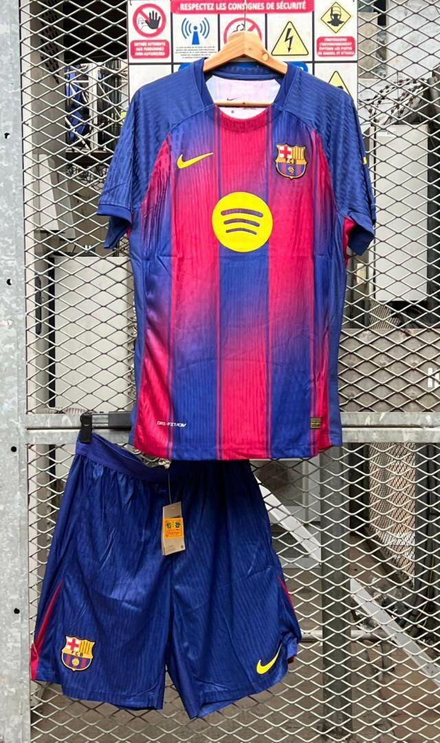 Découvrez notre ensemble de maillot et short FC Barcelone, idéal pour les passionnés de foot. Fabriqué avec des matériaux respirants pour un confort maximal, cet ensemble vous accompagnera partout, sur le terrain ou pour supporter votre équipe préférée.