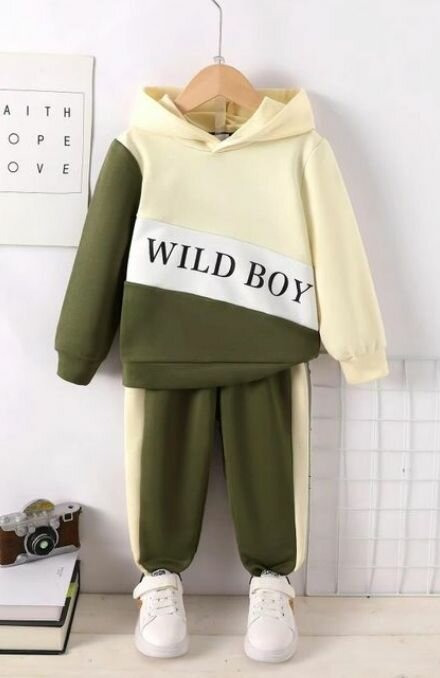 Ensemble chaud et confortable pour garçons, idéal pour l'automne et l'hiver. Sweat à capuche avec inscription "Wild Boy" et pantalon assorti en coton doux. Parfait pour les jeux et les sorties décontractées.