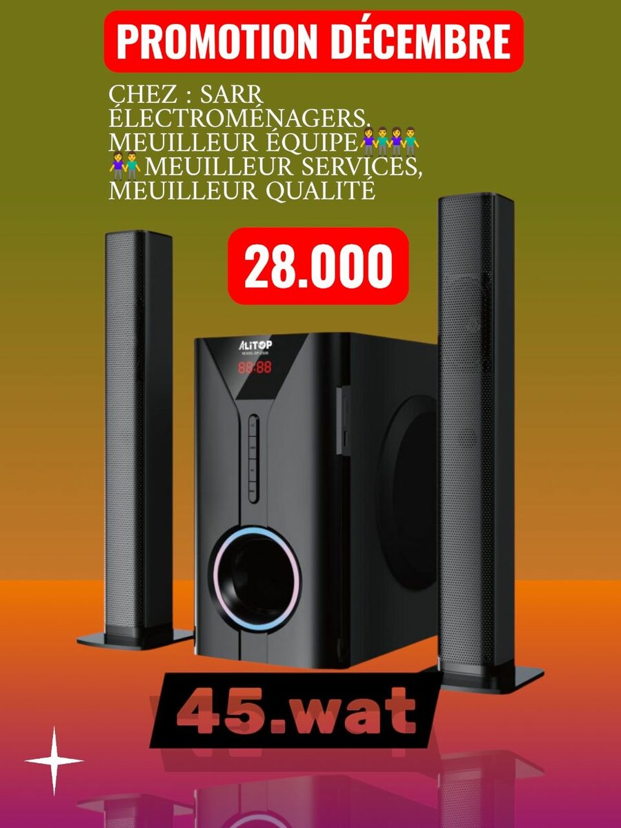 Transformez votre salon en salle de cinéma avec cet ensemble home cinéma. Profitez d'un son clair et puissant pour vos films et musiques préférés. Idéal pour les soirées en famille ou entre amis, cet équipement est conçu pour offrir une expérience audio exceptionnelle.