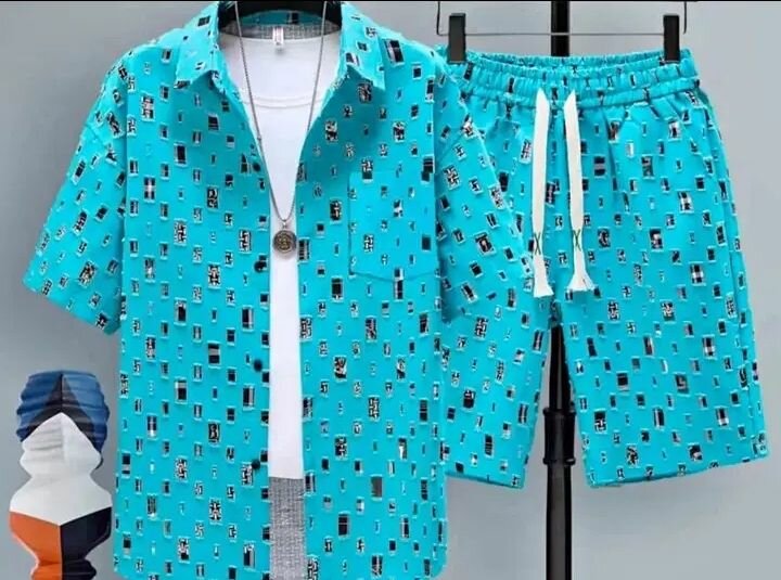 Ensemble homme chic et confortable, chemise et short coordonnés, parfait pour les sorties décontractées. Conçu pour un confort optimal.