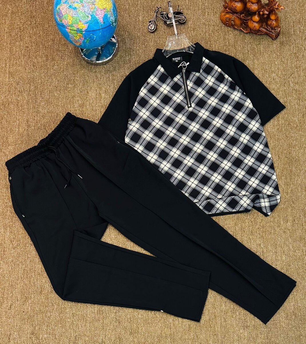 Découvrez cet ensemble homme élégant, composé d'un haut à motif plaid et de pantalons coordonnés. Conçu pour un style décontracté mais chic, il est idéal pour les sorties urbaines ou les activités quotidiennes.