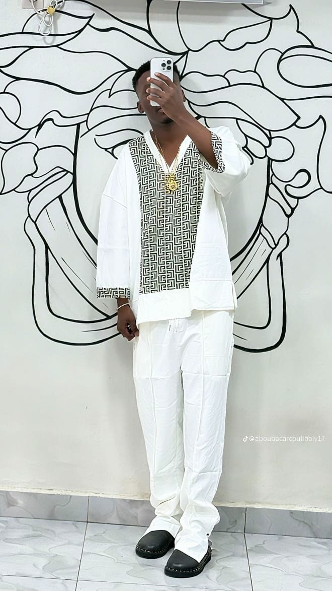 Kaftan et pantalon pour homme, élégant et confortable. Disponible en blanc et marron.