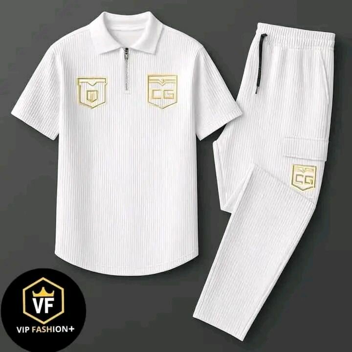 Ensemble homme sportswear blanc composé d'un polo et d'un pantalon. Conçu pour le confort et le style, cet ensemble est idéal pour les activités sportives ou pour une tenue décontractée.